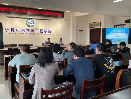 2022年5月11日下午,桂林电子科技大学王子民博士受邀来我院作XCPC-大学生程序设计大赛经验交流讲座。学院专业负责人、教研室主任及年轻教师集体聆听了讲座。