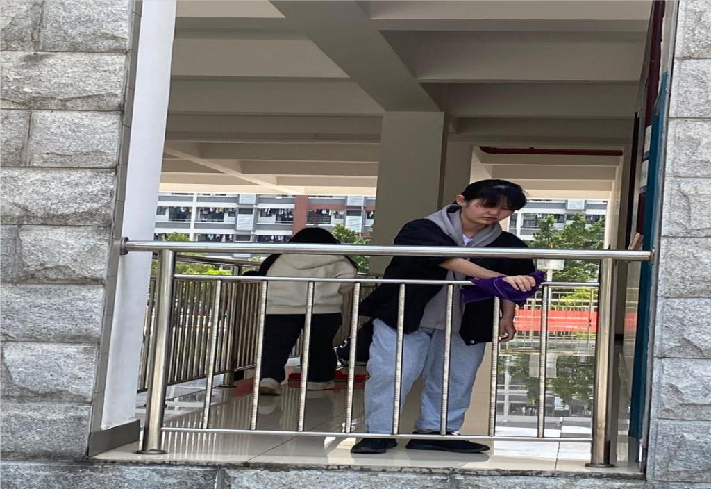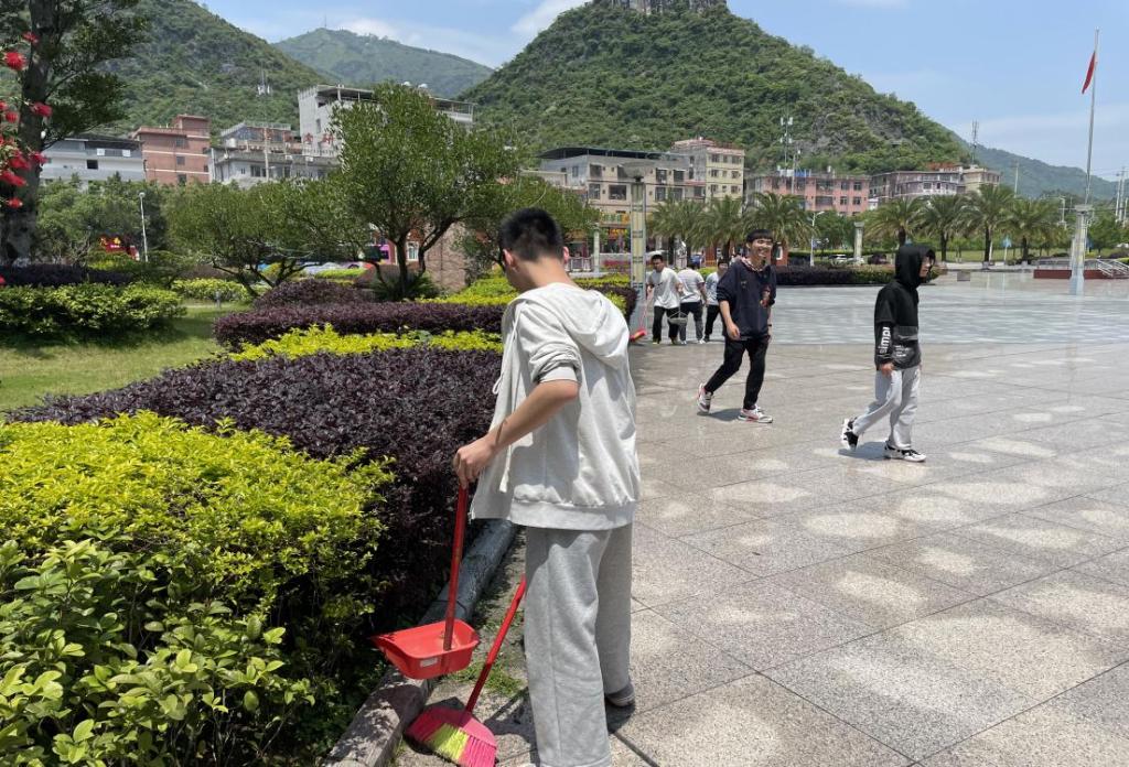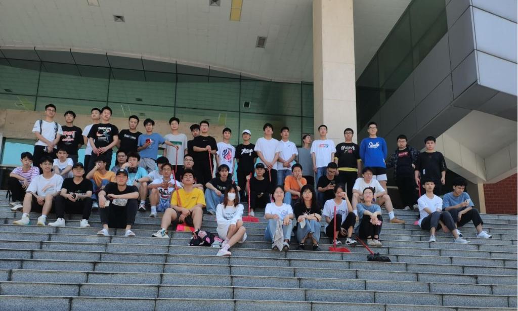 劳动最光荣,同学们在老师的带领下分工合作,对打扫区域进行合理分工。虽正值中午,烈日当头,但每个人依旧有条不紊,对各自负责的区域进行全面仔细地清扫,充分展现了当代大学生良好的精神面貌。