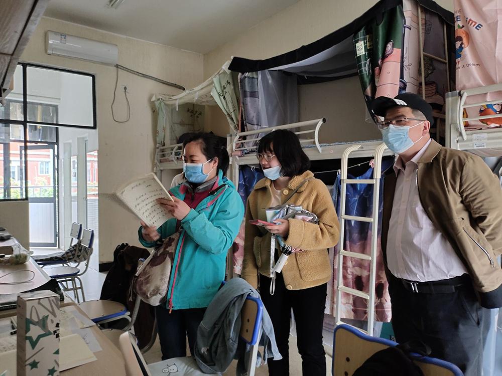走访过程中,辅导员和班主任们通过走访学生宿舍了解学生的学习生活情况,仔细询问学生宿舍的学习、生活等情况,查看寝室卫生。同时耐心向同学解释现有全国疫情情况和学校相关疫情防控措施的意义,旨在引导同学们树立大局意识,严格遵守学校各项疫情防控规定,非不要不外出,一律不得私自翻越围墙,如有特殊紧急事项务必提前办理请假手续。此外也特别叮嘱同学们要整理好宿舍内务,及时清理垃圾,保持宿舍干净整洁、通风;另一方面,尤其要注意合理分配时间,加强锻炼,提高身体素质,做好个人防护。最后,辅导员和班主任都提出,希望舍友间要学会宽容和理解,平时多加强沟通与交流,传递正能量,增强宿舍凝聚力。