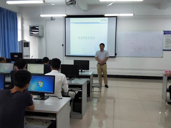 最后,由导宜科技华南区教学主管贾丽君先生为学生进行了详细的课程讲解,华南区教质主管李芳女士进行班级管理及纪律管理讲解、建立班级联系群,组建班委等工作。
