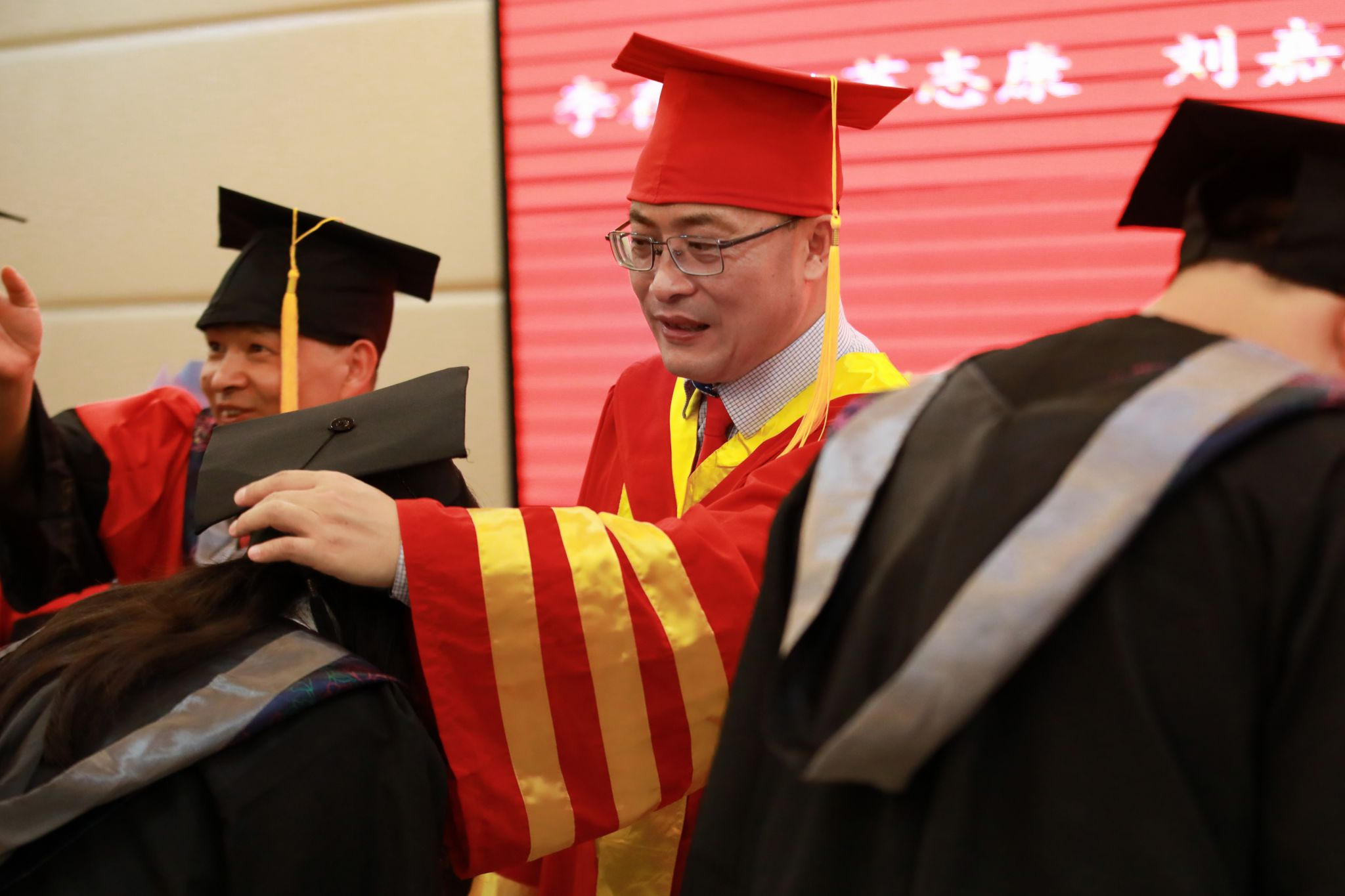 典礼伊始,伟德bv1946官网副院长魏士伟宣读表彰文件,勉励同学们谦虚谨慎、戒骄戒躁、不断进取,在今后的学习和工作中再创佳绩。毕业生代表缑振楠(数据科学与大数据技术专业)深情回顾了四年求学时光:“从懵懂少年到有志青年,母校见证了我们成长的每一步。那些在巡天楼、图书馆奋斗的日子,将成为我们最珍贵的青春记忆。”在校生代表莫舒涵(2022级软件工程专业)向学长学姐送上祝福,愿他们前程似锦、梦想成真。教师代表谢海斌老师以“玻璃门”的温馨回忆寄语毕业生:“希望你们永葆善良之心,锻造坚韧品格,保持健康体魄。无论何时,母校永远为你们敞开大门。”伟德bv1946官网曾利老师也送上殷切嘱托,勉励他们以梦为“码”、不负韶华,在人生新征程上勇敢追梦、永葆初心。随后,主持人宣读学位授予文件,全场响起热烈掌声。在学位授予环节,两个学院学位委员会成员为毕业生代表正冠拨穗、颁发学位证书。主持人代表两个学院党政班子提出三点寄语:一要胸怀家国,以“大我”格局担当时代使命;二要笃行实干,以“忘我”精神成就事业华章;三要坚守初心,以“真我”本色书写精彩人生。希望毕业生在新的征程上勇毅前行,让青春在奋斗中绽放绚丽之花。