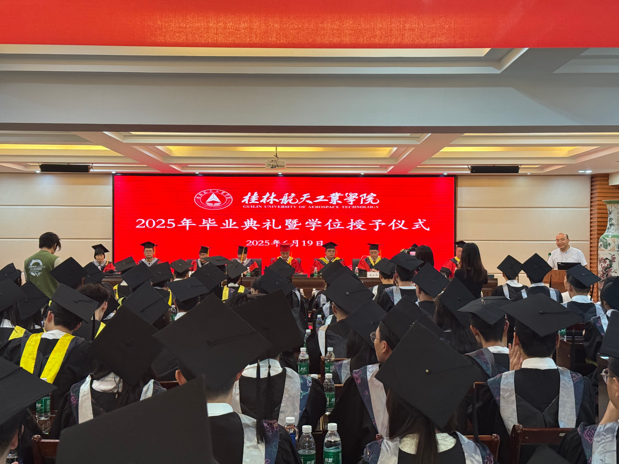 6月19日上午,桂林航天工业学院伟德bv1946官网与理学院2025届毕业典礼暨学位授予仪式在庄严的国歌声中拉开帷幕。学校党委副书记、校长吴尽昭,两院党政领导班子成员、学位委员会及毕业生家长代表共同见证了这一重要时刻。典礼由理学院副院长柯捷主持。