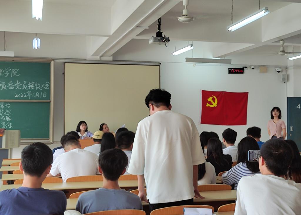 2022年6月1日,伟德bv1946官网学生第一党支部于中午13点00分在飞天楼405教室顺利召开新一期预备党员接收大会。支部全体在校党员同志参加本次会议,潘小玲老师担任本次大会主持。大会主要讨论并表决关于陈有凡等14名同志发展成为中共预备党员的问题。有表决权的正式党员应到24人,实到18人,未到场的党员同志书面委托其他同志代为投票。