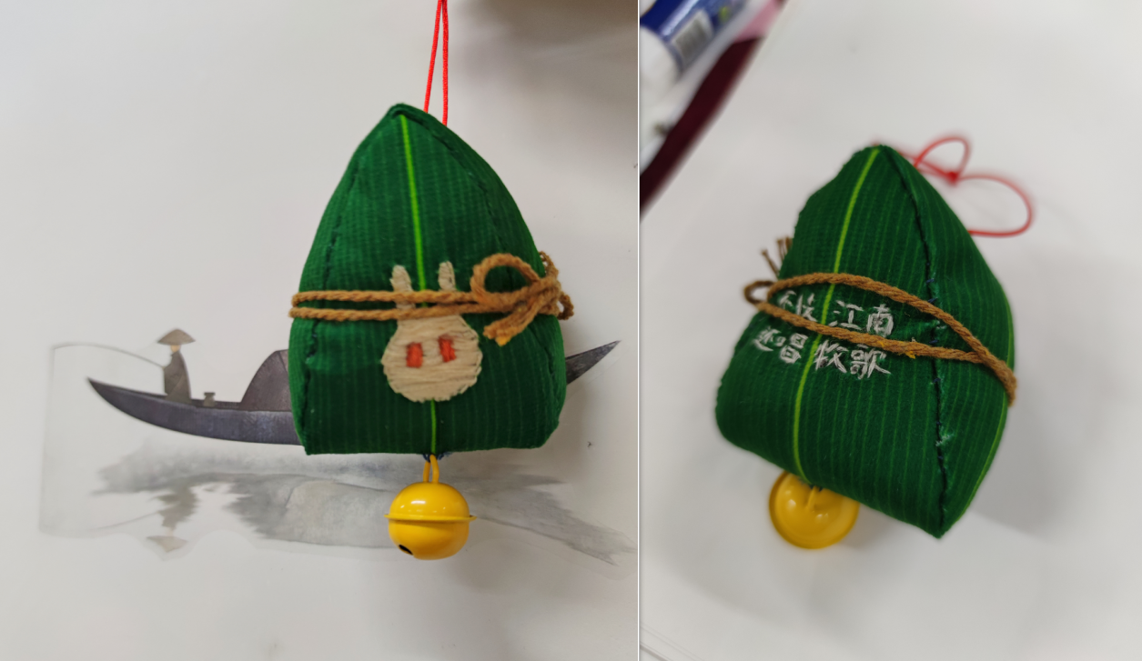 两千多年前,中国民间就有佩戴香囊避除秽恶,确保自身健康的民俗香囊。香囊中的“香”常用的多是芳香开窍的中草药,有清香、驱虫、避瘟、防病的功能。同学们将艾草装进香囊,按照图纸制作成碧绿诱人的“粽子”,并在作品中巧妙融入各类元素:可爱的兔子寓意超越自我、迈向成功、心想事成;原创诗句不忮江南,还唱牧歌表达了热爱和赞美故乡的情感;一针一线绣上的党旗和“100”可谓是“红旗擎天地,妙手绣香囊”。活动最终评选出一等奖1名,二等奖3名,三等奖3名,优秀奖4名。
