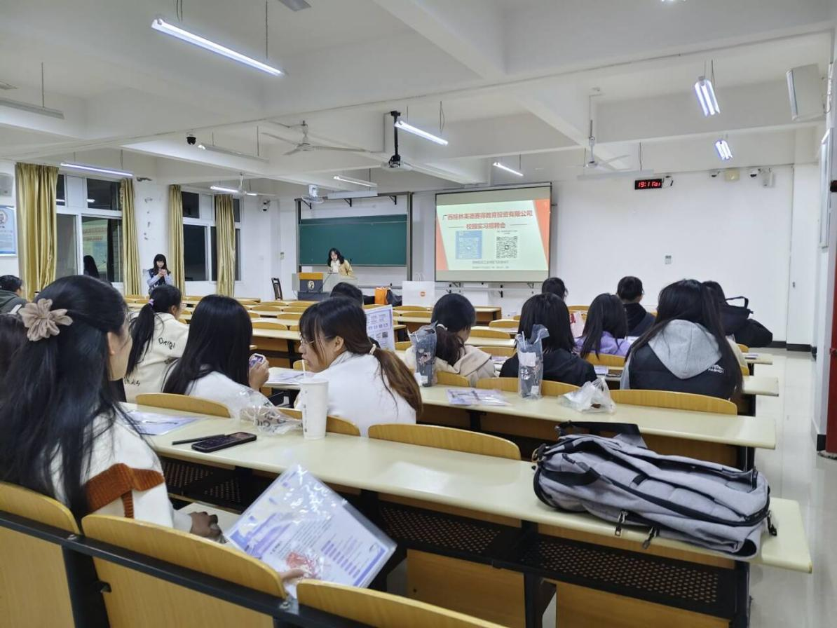 为深入推动2025届应届毕业生的就业工作,2024年11月22日晚,伟德bv1946官网联合广西桂林美德赛得教育投资有限公司在南校区飞天楼407教室举办了一场别开生面的宣讲会。美德赛得投资有限公司的招聘负责人莅临现场,吸引了众多2025届毕业生参加。