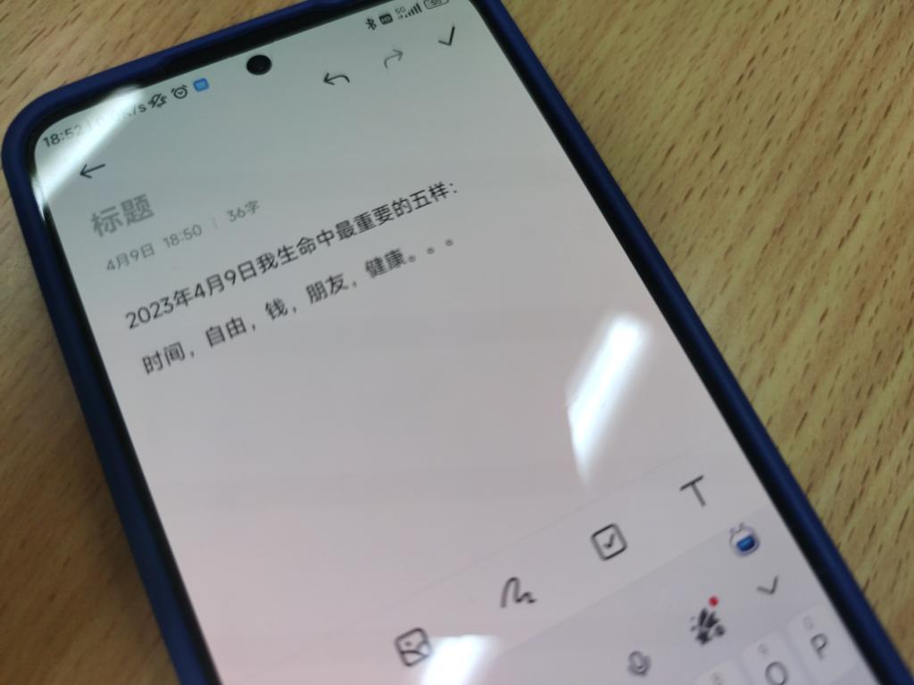 第三个环节为“生命五样”,邀请同学们在白纸上写下生命中最重要的五样东西,不必考虑顺序,写完后小组内相互交流,可以对写下的五样东西做修改。接下来假设生活发生了意外,必须划去一样一样又一样,直至剩下最后一样。最后小组交流划去的顺序和理由,组内分享自己作出留与舍决定时的心理感受。同学们谈到人生必有取舍,有取舍就有痛苦,但我们可以去重新思考,究竟自己生命中什么是最重要的,什么是需要自己努力去维护、争取、创造和发展的。也有同学认为生命是一个发展的过程,现在留下的最后一样是截至目前最重要的,随着生命的发展,或许会找到新的、更深的答案。