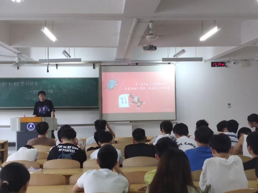 为推进我院“三自班级”学风建设方案,促进班风、学风建设,2021级软件工程专业2班于10月16日下午5:00在飞天楼214教室开展“大学生日常行为规范”学风建设活动,本次讨论会由组织建设小组策划并主持,辅导员杨恋参会。