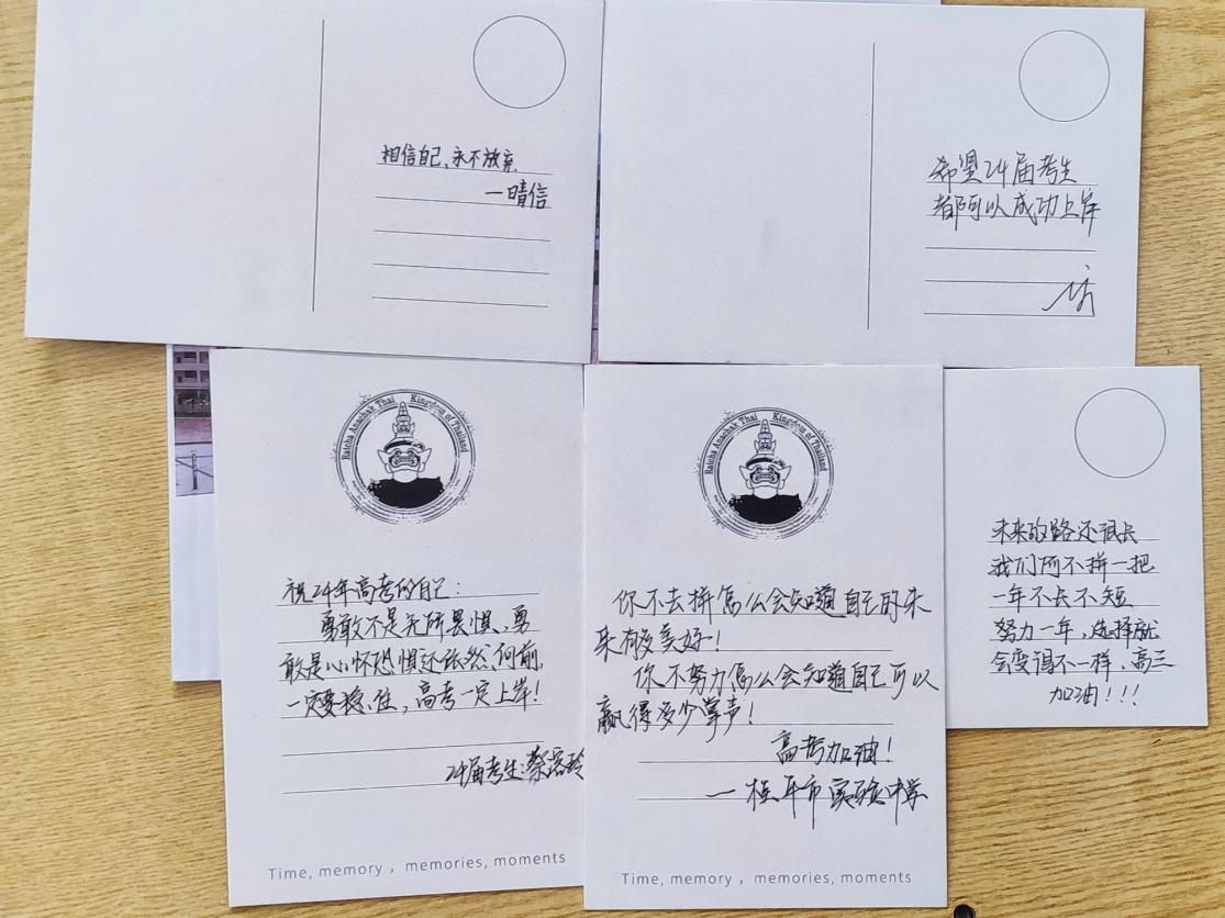 在宣讲活动的最后环节,宣讲团成员们给同学们准备了120张印有桂航校园风景的明信片,鼓励同学们写下备考宣言及高考目标。团队组长袁锐在活动后总结,同学们能够燃起斗志,充满信心地迎接这个至关重要的阶段,是开展本次宣讲活动的初心,同时也被学弟学妹们必胜的决心所感染。