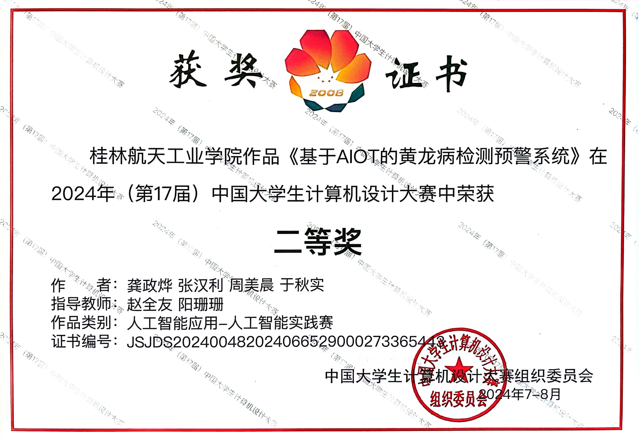 我院学子在“2024年(第17届)中国大学生计算机设计大赛”全国总决赛斩获二等奖