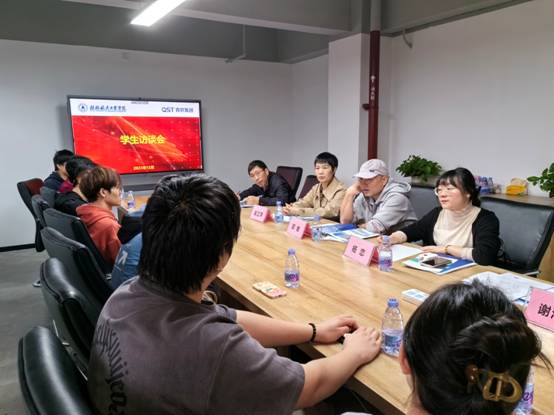 青软集团副总裁韩涛和大湾区基地总经理张玉芹等汇报了企业老师的课堂授课、实践指导和辅导答疑情况,以及学生在基地的学习、实习、生活及就业情况等。
