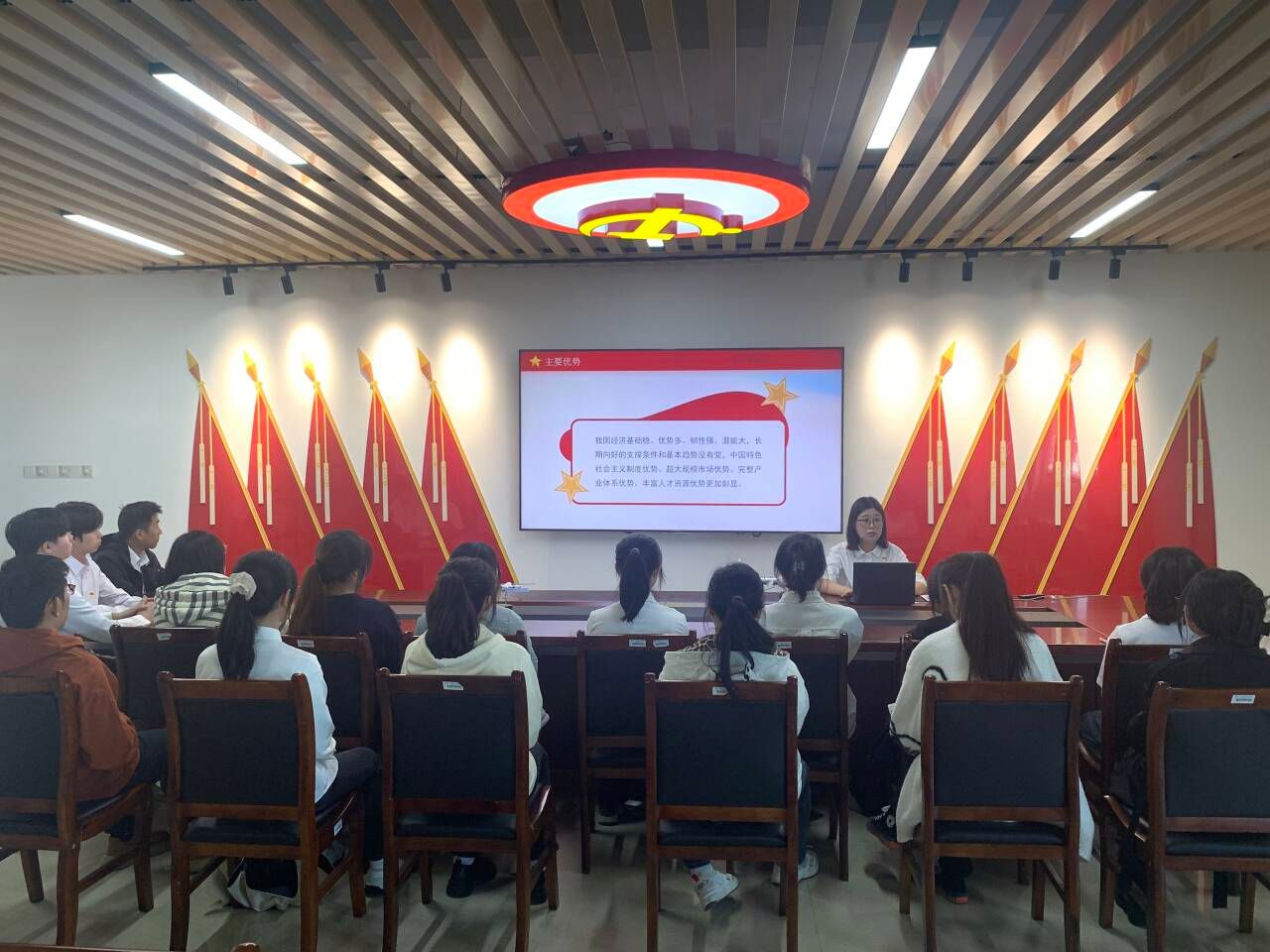 随后,王子玉围绕“总体要求”、“重大原则”、“主要目标”等22个关键词,逐一进行详细解读。通过这些关键词,学生党员们更加准确地把握全会公报精神,理解新时代党的建设和国家发展的方向。